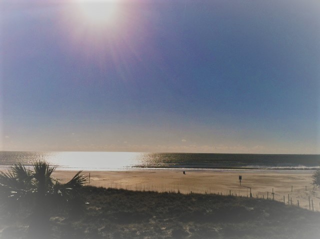 This morning, inspired by the rhythm and beauty of the sea, we talked about moments in life that become preserved (perfectly?) in our memories. Of course as mother and daughter we had some shared moments to talk about – and also some individual ones. I told mom about a moment I shared with a friend of mine on a backpacking trip, when we rushed to the tip-top of a peak called ‘Shining Rock,’ with just too little time before the sunset to search for and find out cameras in our wet packs. When we hit the crest of the mountain and emerged onto the quartz outcrop, the sun was breaking through the clouds in an array of colors and beams that took our breath away. It reminded me of the ocean in a way – like seeing underneath the water. The clouds set a soft horizon line over the expanse of blue ridges.