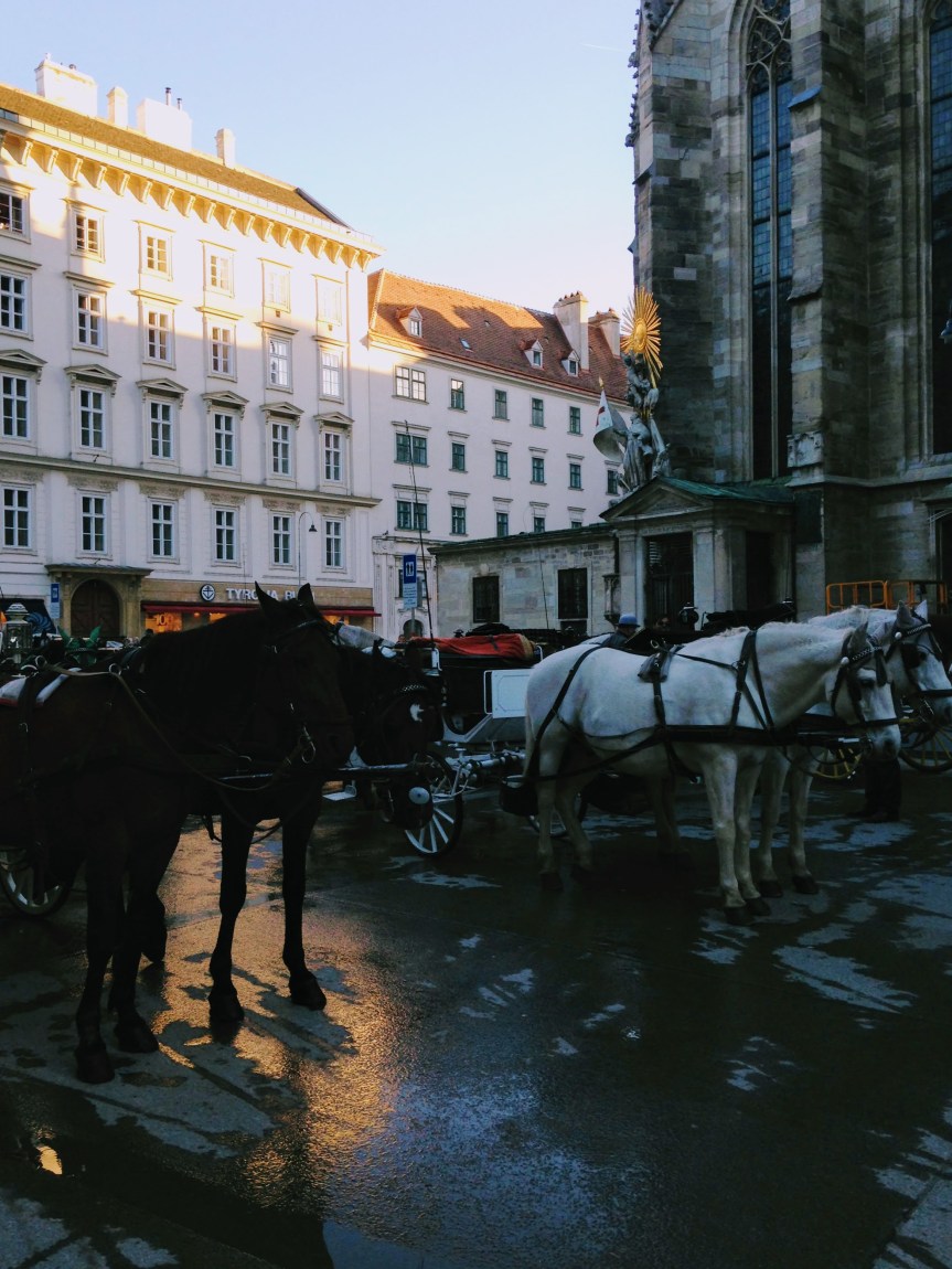 Strategies: So I guess this is always the case, but at the time the wonderful flight crew (thanks Swiss Air, I mean really, you should fly Swiss Air) brought around breakfast, it was 11:30 pm in my world and body. Still, I pressed on, drank another cup of coffee, ate half a croissant, and tried to prepare myself mentally to begin a new day. I learned that perhaps I approached jet lag all wrong. Having slept 0 minutes, I arrived in Vienna and somehow, although I don’t remember the process, made it to my hosts’ 4th story flat. I was graciously welcomed and then immediately fell asleep on the lofted guest bed for 3 hours. One of my hosts woke me and warned that if I slept any longer I’d feel even worse tomorrow. I remembered to check my blood sugar and was pleased to find it wasn’t so bad, 145 mg/dl or so. I took half my Lantus dose, because my schedule was all screwed up and I needed to begin working my doses back towards ‘morning’ and ‘night.’ And then I began the remediation process. After showering and drinking more coffee, I followed my hosts’ directions to Stephansplatz – the city center and location of the giant Stephansdom Cathedral, which I just learned from Wikipedia is one of the tallest in the world. I wandered among the young men in period costumes who showered me with flyers for the Mozart theater experience that I just had to see. I walked inside the giant wooden doors of Stephansdom, carved elegantly and polished, to enter the quiet cavern of worship. It was dark, as most giant cathedrals tend to be, but the stained glass scenes were vibrant and prayer candles lined the front iron rails. I added a candle to the bunch, walked slowly around the wooden floors listening to the echo of my footsteps, snapped a no-flash picture, and exited, emerging again into the light.