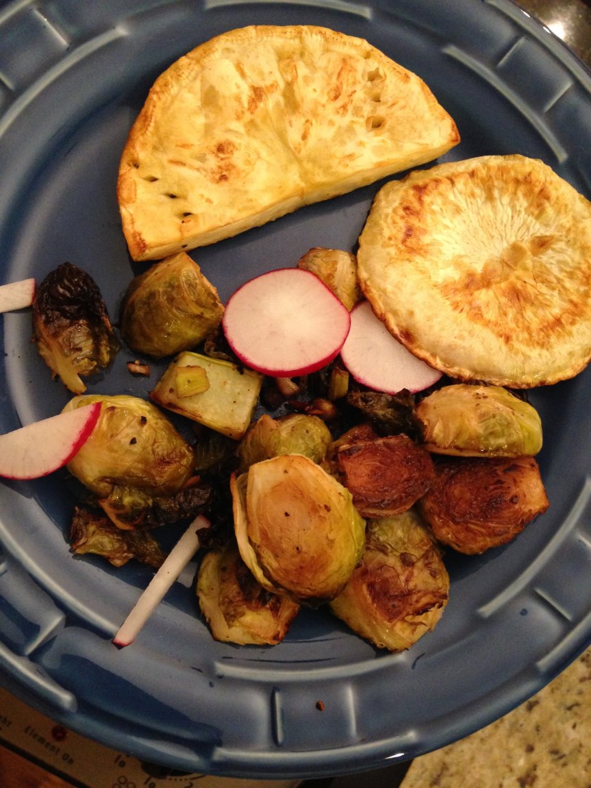 It’s really a vegetable that you have to tackle – which goes well with the general metaphor of this post. I used this recipe from Bon Appetit for Celery Root Steaks with Tomatillo Salsa Verde as a basis.